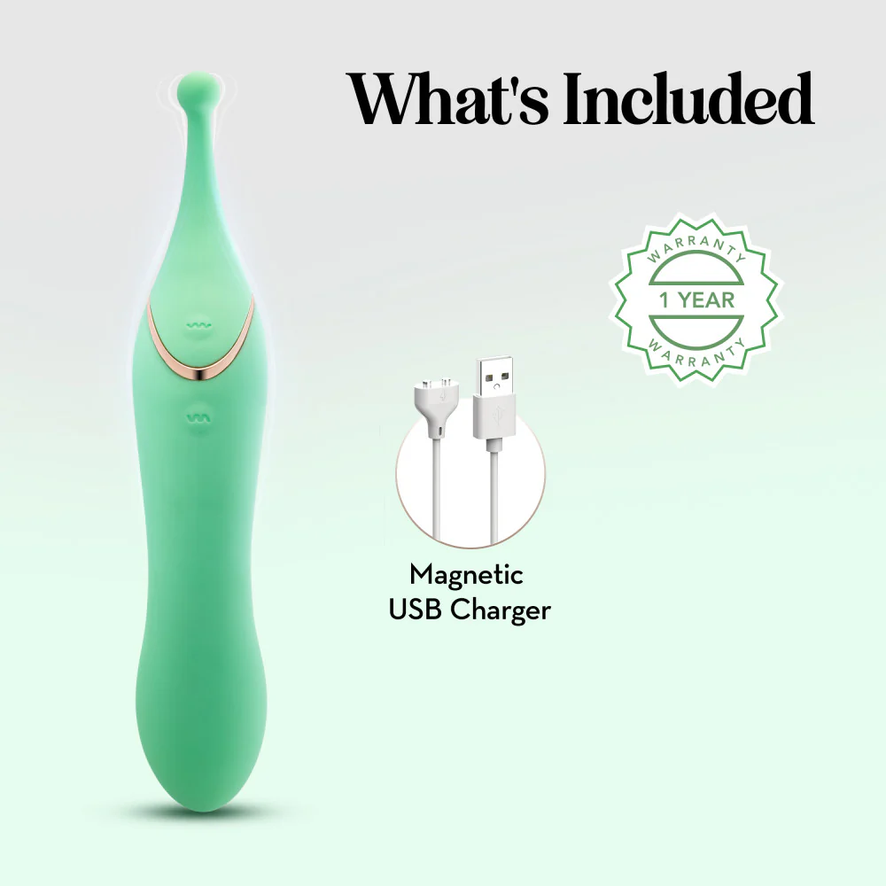 Beautifully designed, this dual-ended wand combines ten oscillating vibrations on one side and seven G-Spot vibration settings (three speeds and four patterns) on the other to ignite your deepest desires.